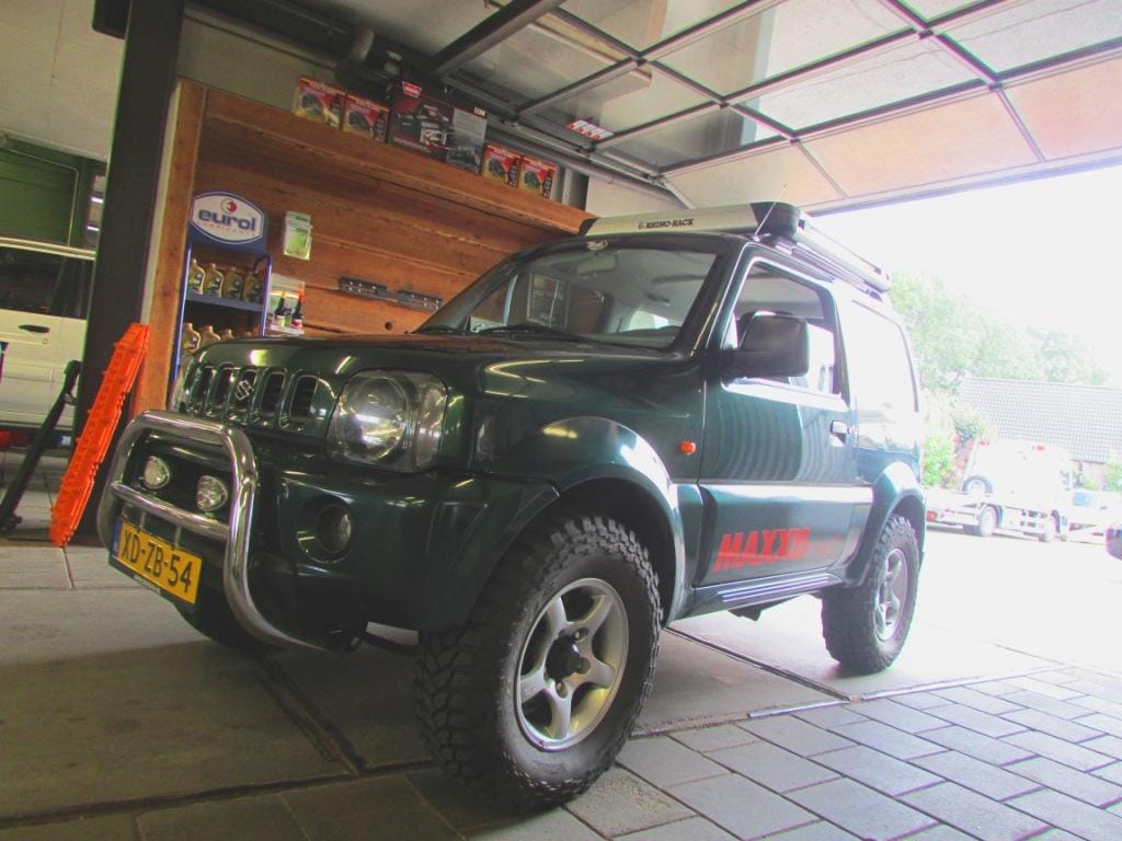 Deze groene Suzuki Jimny was van onze (toen nog) monteur Robbert en helemaal klaar voor terreinrijden.