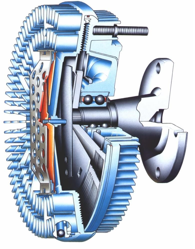 Deze koppeling zorgt ervoor dat de ventilator achter de radiator extra lucht gaat aanzuigen als de motor boven een bepaalde temperatuur komt.