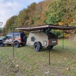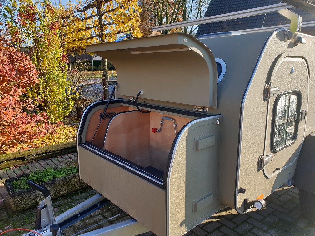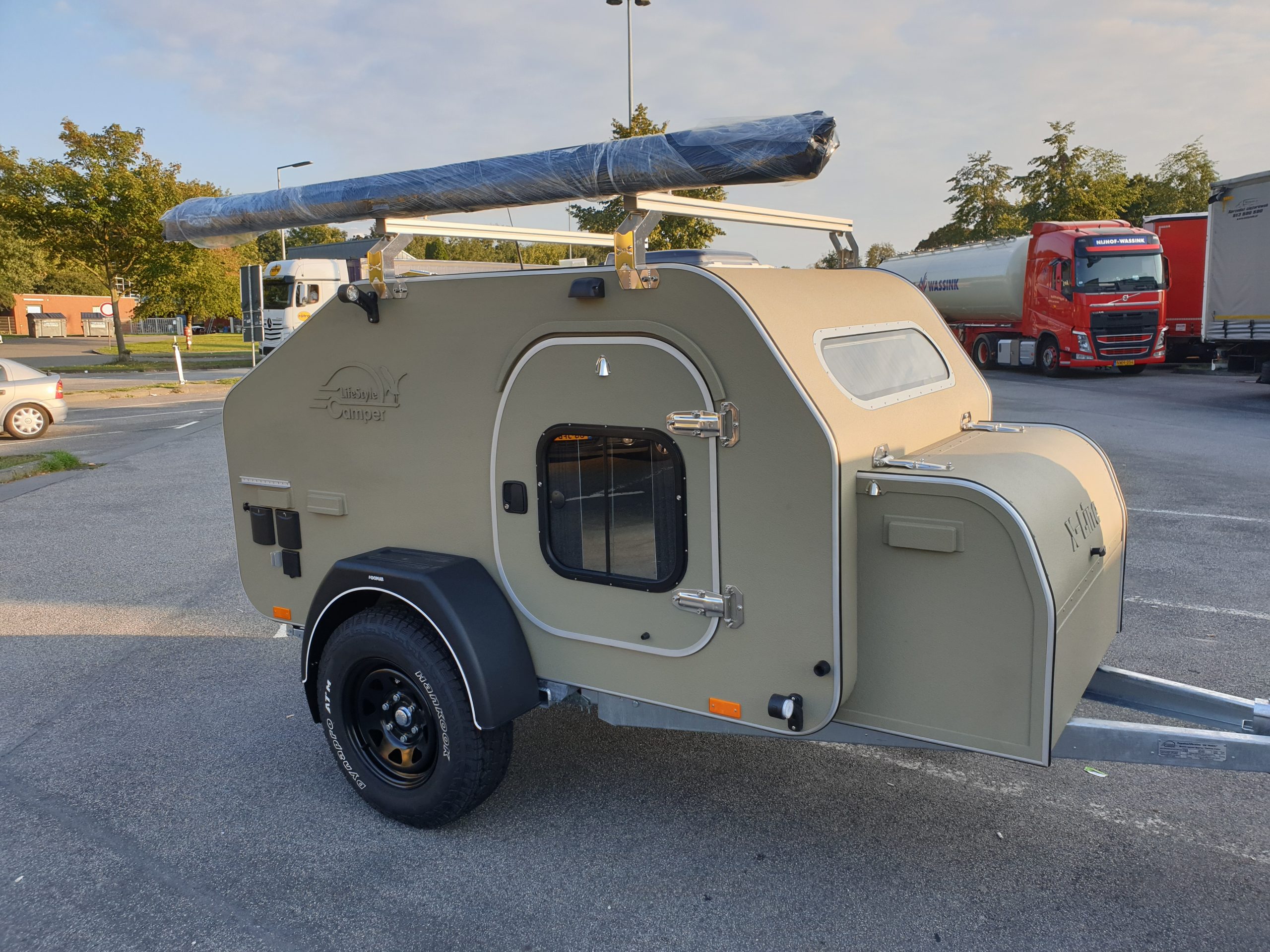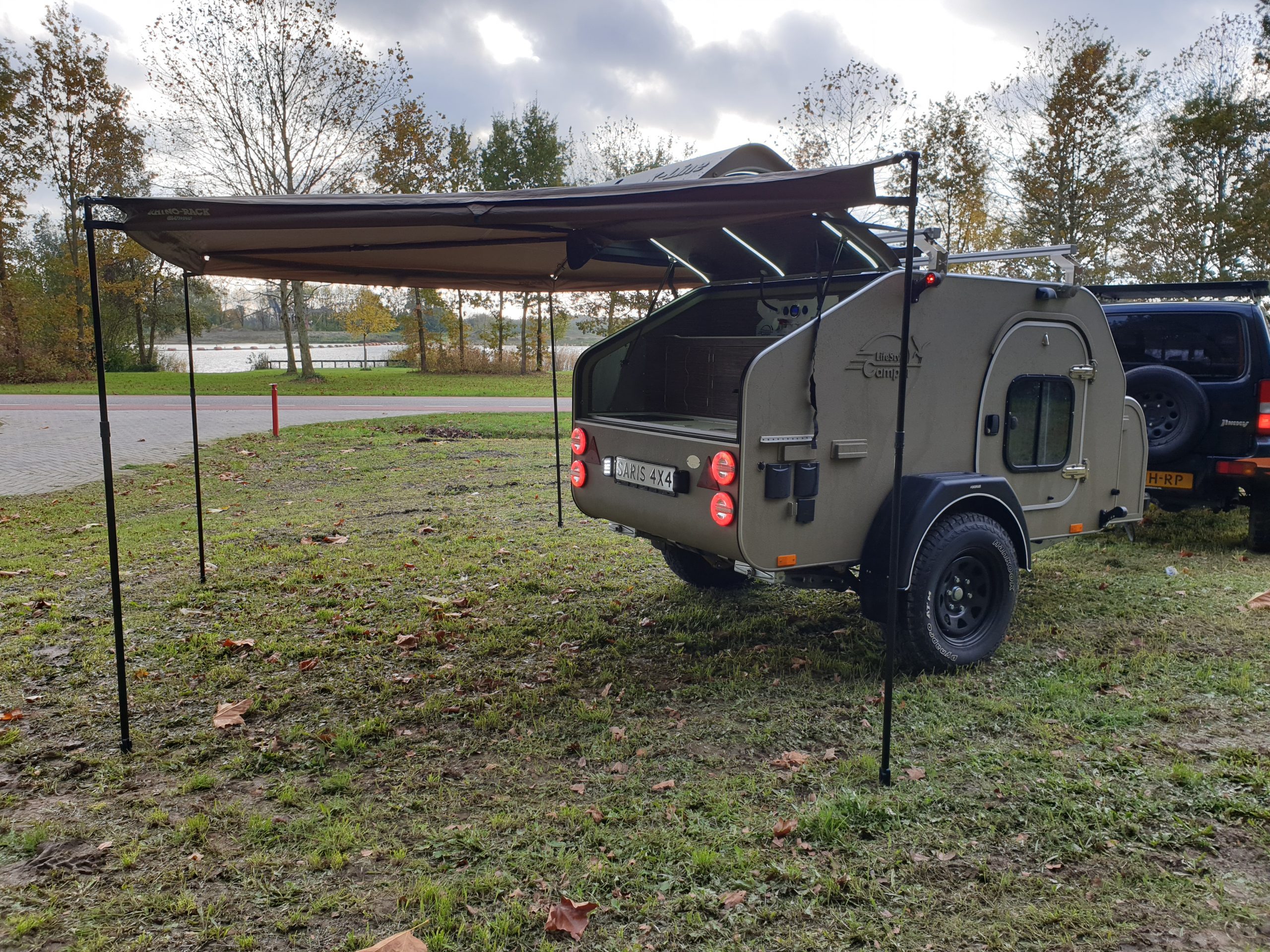 Deze compacte trailer kan voorzien worden van offroad banden en onderstel. De robuuste Line-X coating zorgt voor een geïsoleerde en krasvaste buitenwand. De trailer is slechts 520 kg en kan dus door bijna elke auto getrokken worden.