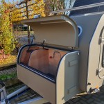 Dé camper trailer om mee te nemen naar uw droombestemming. Dit teardrop model staat voor hightech in een retrolook jasje. Bent u een natuurliefhebber, strandgast, citytourer, roadtripper of…. dit model is geschikt voor elk gewenst avontuur. Of u nu alleen reist of met uw gezin, deze camper trailer biedt vele mogelijkheden. Het is een compacte trailer maar van alle gemakken voorzien. De Steeldrop kenmerkt zich zoor de geïsoleerde geborstelde rvs buitenwand. Door deze rvs buitenwand lijkt de camper trailer op te gaan in de omgeving. Met een gewicht van slechts 470 kg kan deze camper trailer door vrijwel elke auto getrokken worden.